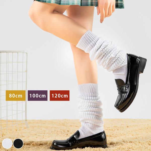 メール便送料無料 ルーズソックス 白 黒 80cm 100cm 120cm 靴下 スクール 女子高生 コスプレ 仮装 かわいい ギャル おしゃれ くしゅくしゅ ざっくり リブ 春夏 秋冬 オールシーズン ロング 伸...