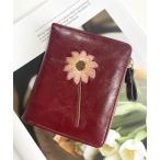 財布 フラワー 刺繍 レザー調 スクエア 二つ折り 財布 レディース