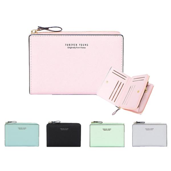 財布 ソリッドカラー レザー調 二つ折り スリム ウォレット レディース