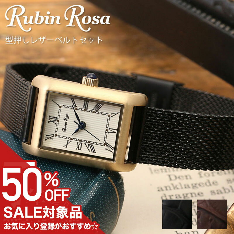 【50%OFF半額 16500円引】[電池交換不要]お母さんにプレゼント 当店限定 ベルトセット ルビンローザ 腕時計 RubinRosa 時計 レディース 女性 ソーラー 華奢 細ベルト スクエア型 小さめ アンティーク ヴィンテージ 調 おしゃれ レザー ギフト プレゼント