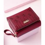 財布 レザー調 リーフ モチーフ付き 三つ折り 長財布 レディース
