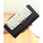 財布 レザー調 ボタニカル バイカラー スクエア 長財布 レディース