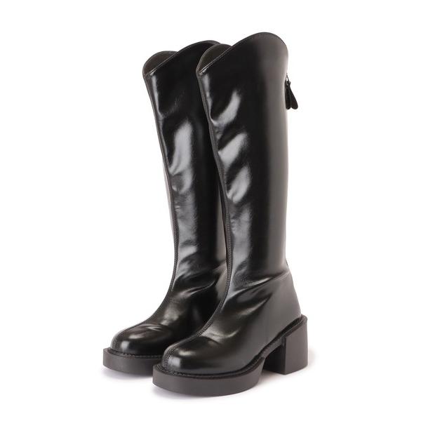 ブーツ バックファスナー ウエスタン 厚底 ロング ブーツ レディース