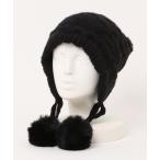 ニット帽 ニットキャップ ビッグ ファー ポンポン付き ケーブル ニット ワッチ レディース
