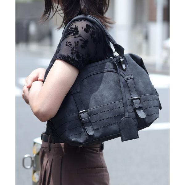 ボストンバッグ レザータッチサイドベルトボストンバッグ/ハンドバッグ レディース
