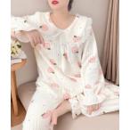 パジャマ ルームウェア プリント柄 開襟 長袖 パジャマ ルームウェア レディース