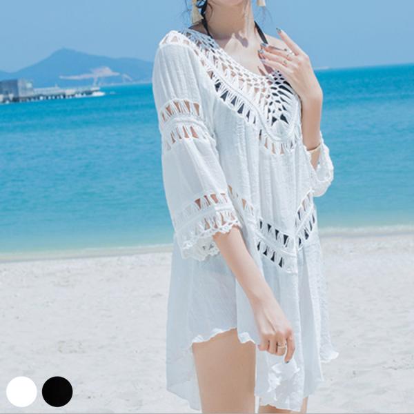 メール便送料無料 水着通販ストア ヘムスカート風 クロシェ シンプル 白 黒■セット内容・1点・ワンピースレディース クロシェ編みワンピースボヘミアンな雰囲気のクロシェ編みワン...