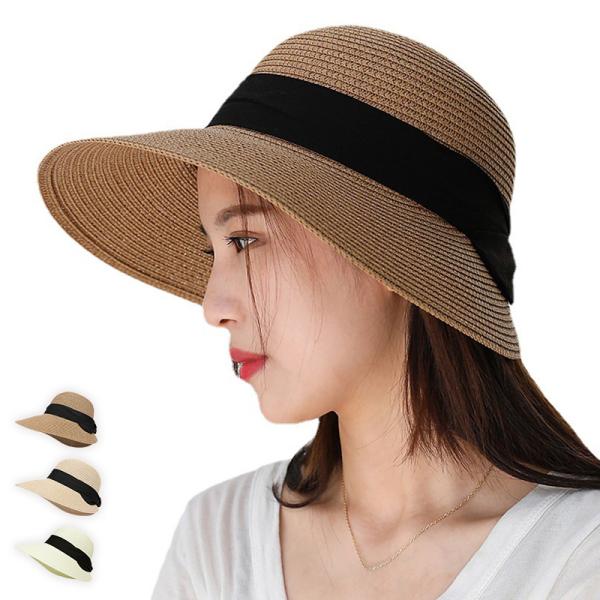 送料無料 翌日配達 あすつくつば広帽子レディース 麦わら帽子 リボン付き ペーパーハット 折りたたみ 携帯 持ち運び 日よけ帽子 通気性 内側 紐 調節 紫外線対策 日焼け対策 普段使い ...