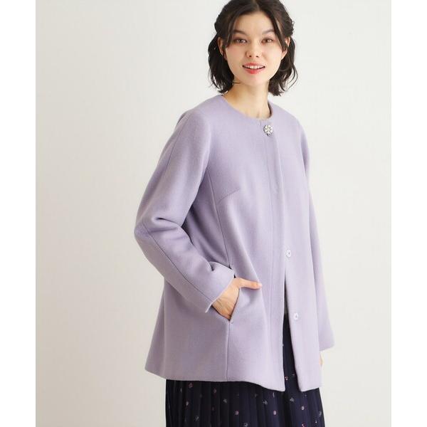ノーカラーコート コート 「ウール混/ビジューボタン」ミドル丈コート レディース
