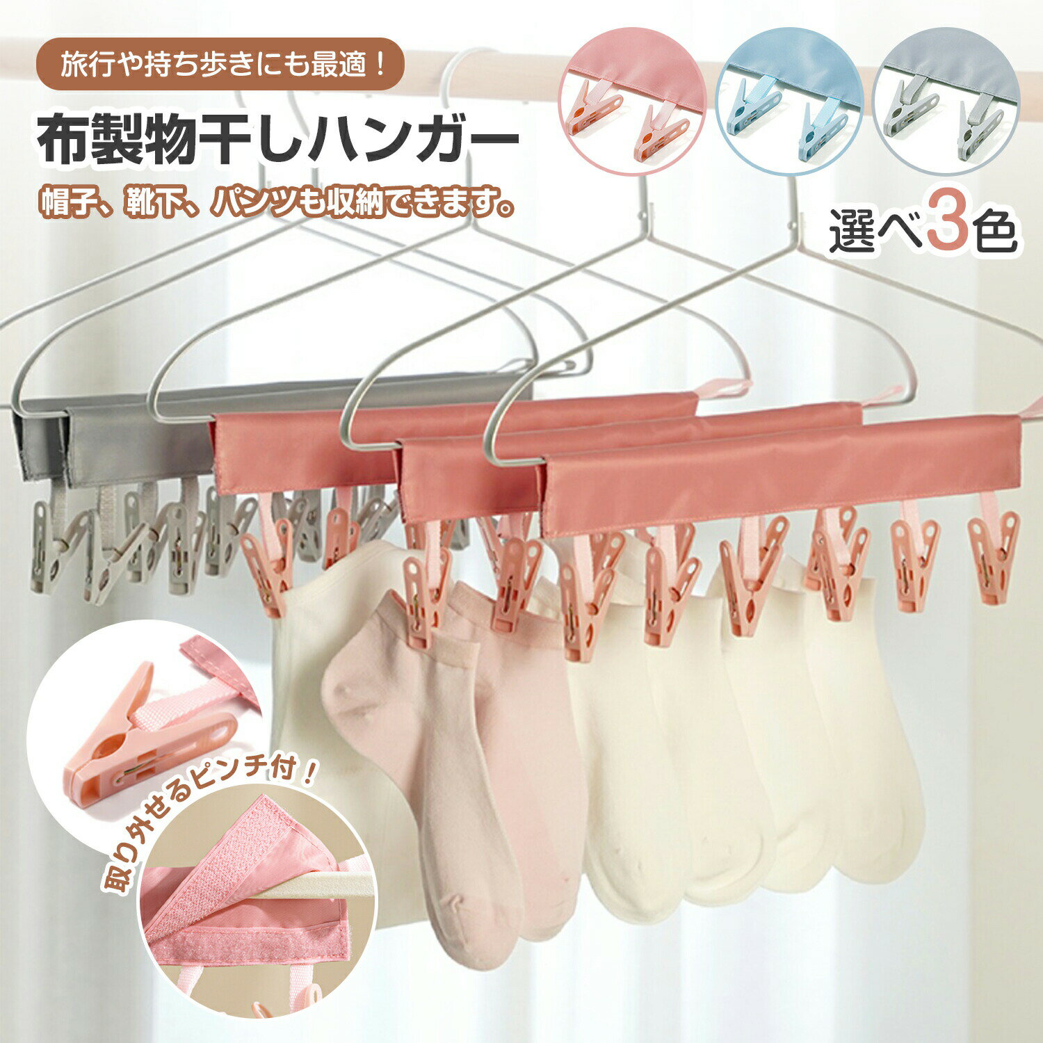 \マジックテープでどこでも付けられて便利なピンチハンガー!旅先での強い味方/ 布製ハンガー 折り畳み式 携帯しやすい 洗濯ばさみ つまみやすい ハンカチ・靴下・帽子・下着・小...