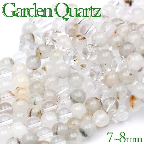 一連売り 連材 マダガスカル産 ガーデンクォーツ(庭園水晶、ファントムクォーツ) 丸ビーズ 8mm 10070364