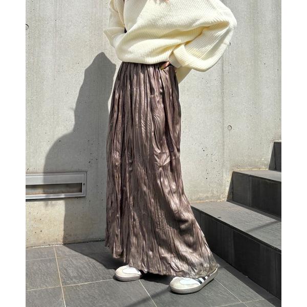 スカート 「ISOOK / アイスー」レザーライクしわプリーツスカート / レザースカート ギャザースカート 合皮 ロング スリット ハイウエスト ウ