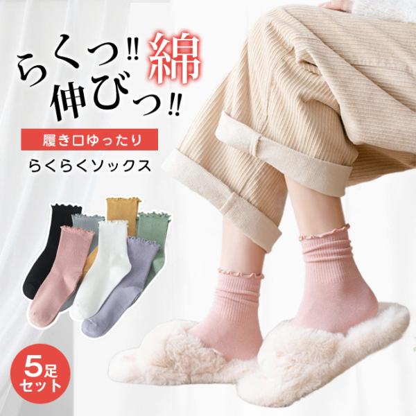 【期間限定全品10%off】履き口ゆったり らくらくソックス しめつけない 靴下 5足セット クルーソックス レディース コットン 綿 ゆる 女性 ゆ
