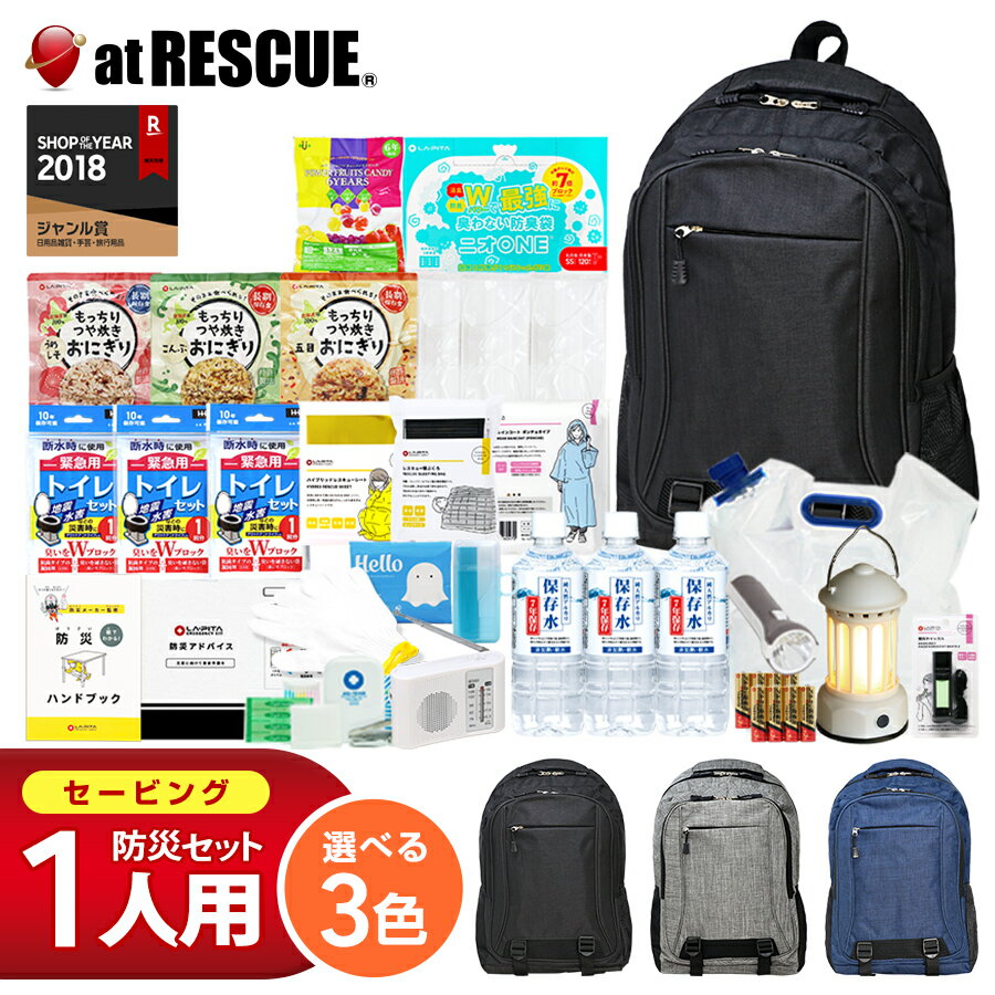【楽天イーグルス感謝祭★55%OFFクーポン 14日13時~】防災セット【 1人用】 セービング 防災グッズ 防災 災害対策 防災用品 保存食 保存水 非常食 防災ラジオ 寝袋 非常用トイレ 避難グッズ 防災リュック 大容量 色が選べる 防災リュック ライト ごはん おにぎり 消臭袋