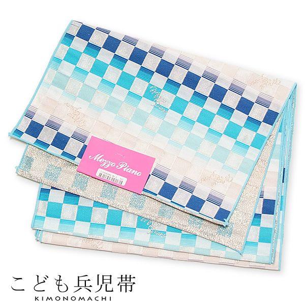 (Prices down)子ども 兵児帯「ブルーチェック」 メゾピアノ 子供ゆかた帯 女児浴衣帯 こどもss2512kkd60