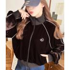 ブルゾン アウター ワンポイント刺繍配色ラインベロアトラックジャケット レディース