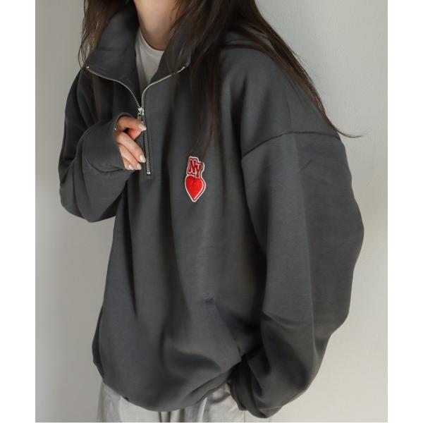 トレーナー スウェット ワンポイント刺繍/プリントハーフジップスウェット レディース メンズ