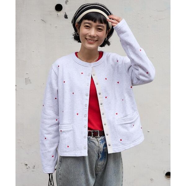 カーディガン ミニハート刺繍 コンパクトカーディガン レディース