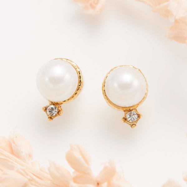 日本製 メイドインジャパン素材真鍮製ラインストーンフェイクパールゴールドコーティングセラミックポストサイズ縦:約6.0mm横:約4.0mm厚み:約5.7mmポスト長さ:約10.0mmポスト太さ:約0.5mm耳...