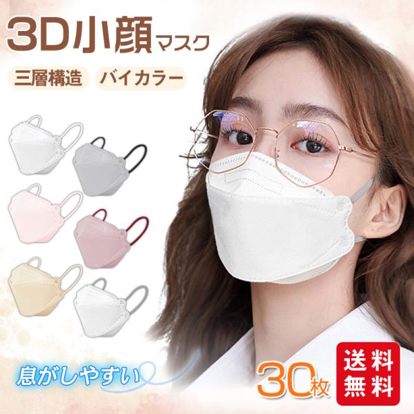 【2点買うと10%OFF】マスク 小顔3Dマスク 立体 30枚 ひんやり 息がしやすい バイカラー 不織布マスク くすみカラー パステルカラー 3層 口紅が付きにくい 爆買