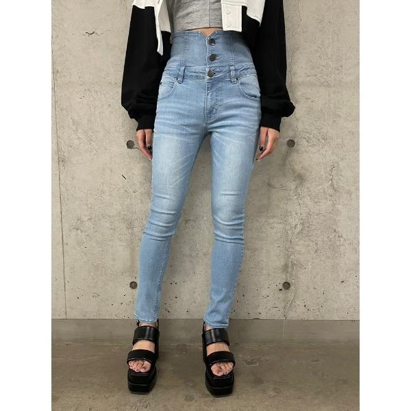 「TOMORROWLAND」 「red card」加工スキニーデニムパンツ 23 サックスブルー レディース