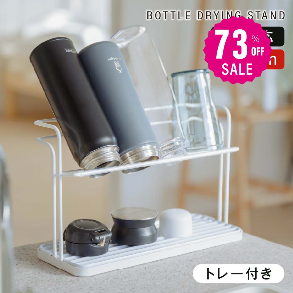 【73%OFFクーポン利用で1723円】水筒スタンド 水切りラック 滑り止めバー 水切り 水受けトレー付き 置き 立て 安定 収納 乾燥 ボトルスタンド 水切りかご 乾かす コンパクト マグボトル 哺乳瓶 まな板 鍋ふた ボトル キッチン収納 c-00043