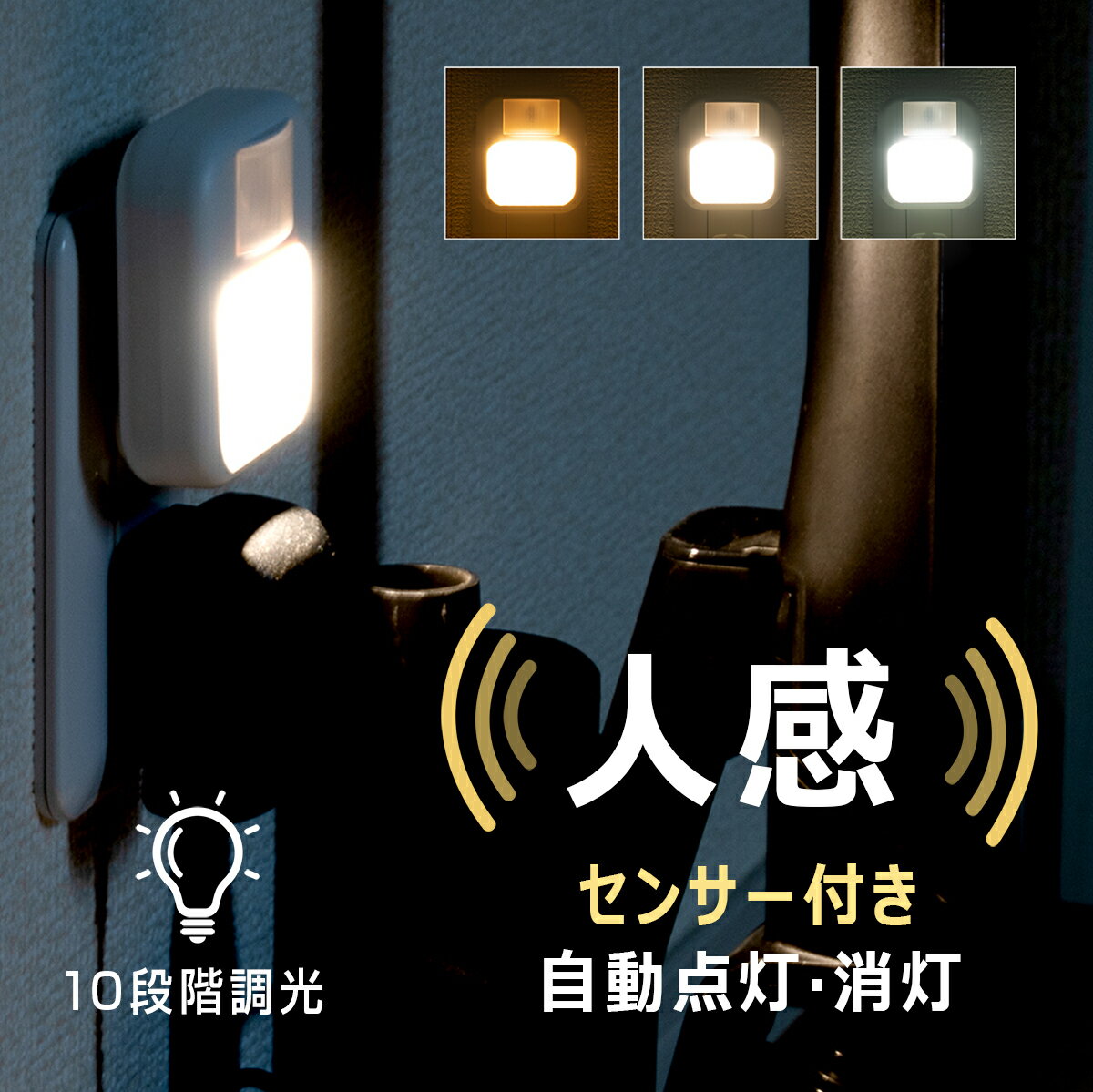 【24時間限定 2点目60%OFF】 センサーライト ライト コンセント 人感センサーライト 室内 フットライト 常夜灯 足元灯 屋内 人感 センサー 調光 省エネ 明るさ 調整 調節 タイマー 自動点灯 消灯 LED 室内 玄関 廊下 トイレ 階段 明るい