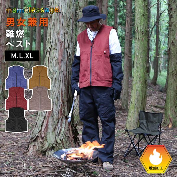 【nameless/ネームレス アウトドア 難燃ベスト】全5カラー、M/L/XL焚火をもっと身近に楽しむことができる難燃ベスト。難燃加工に使用している溶材は、国際認証機関により「エコテックス...