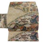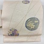 名古屋帯 名品 桜 松竹梅 箔 クリーム 正絹 中古