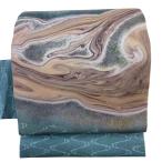 美品 名古屋帯 名品 落款あり 墨流し よろけ縞 薄緑 正絹 中古