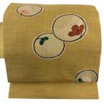 美品 名古屋帯 秀品 花 山吹色 正絹 中古