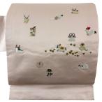 名古屋帯 秀品 十二支 刺繍 金銀糸 ピンク 正絹 中古
