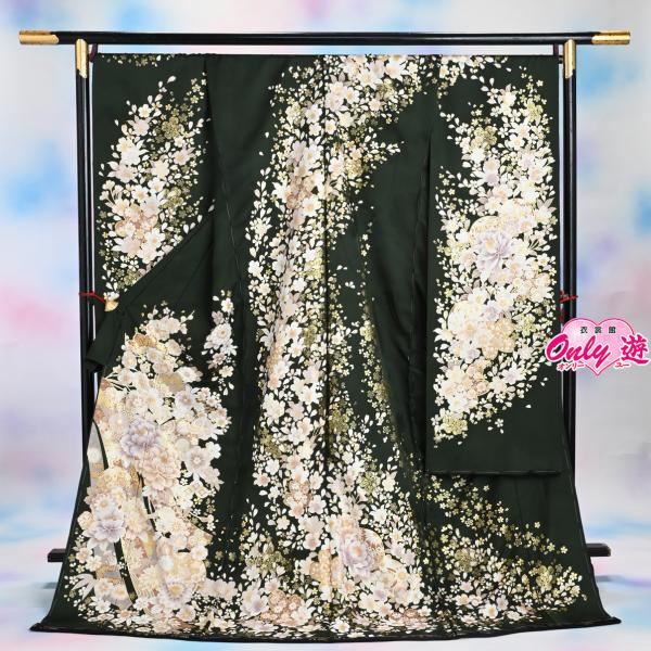 D070-BN1160-L24/振袖セット/レンタル/あらまほ袖/20-1148BN/Lサイズ/レディース/成人式/振袖/レンタル/モスグリーン