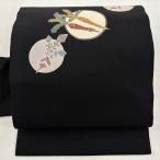 美品 名古屋帯 優品 花鳥 雲文 墨色 正絹 中古