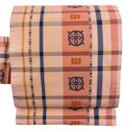名古屋帯 優品 紬地 格子 鼻 ピンク 正絹 中古