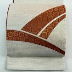名古屋帯 優品 夏帯 絽 草花 幾何学模様 クリーム 正絹 中古