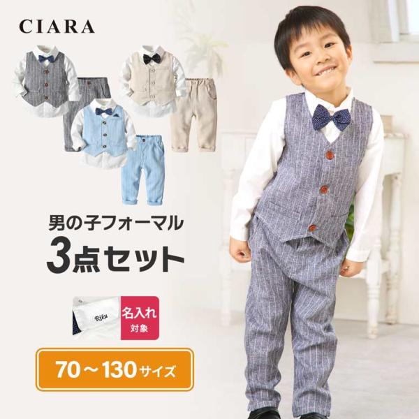 サイズ70 80 90 100 110 120 130カラーグレー / ブルー / ベージュキーワード子供服 フォーマル キッズ フォーマル シャツ ワイシャツ リボン 子ども 3点セット 上下セット セット ズボン ベス...