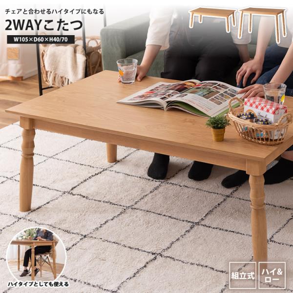 2WAYこたつ コタツ おしゃれ 幅105 長方形 ハイ ロー やぐら型 ダイニングテーブル センターテーブル KT-118NA 2WAYこたつ