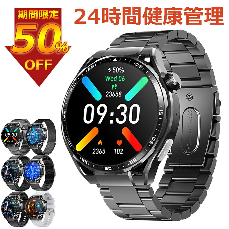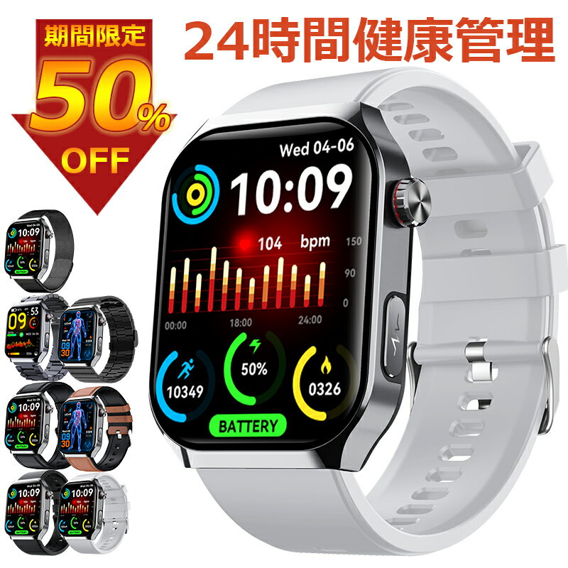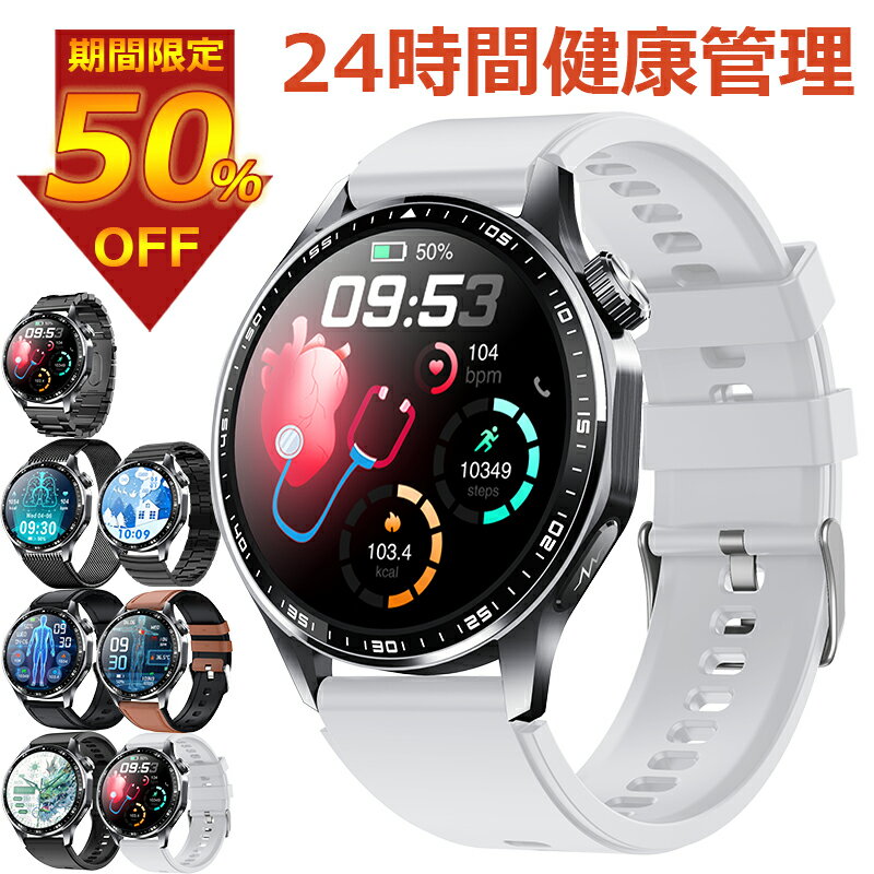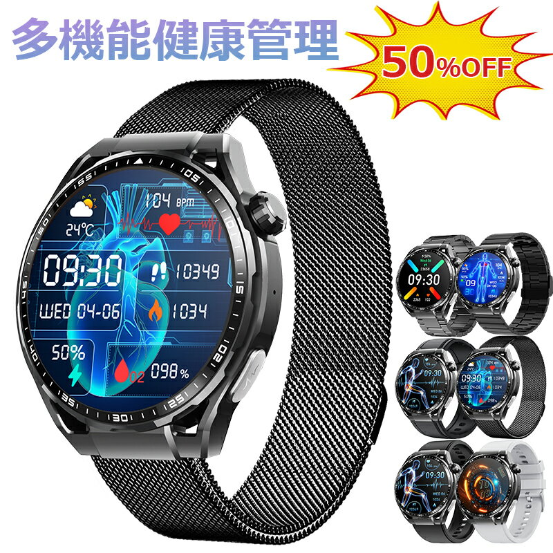【50%OFF→4,490~5,490円 即納可能】 スマートウォッチ 日本製センサー 血圧 心拍数 血糖値 尿酸値 ECG心電図測定 血液組成分析 着信通知 HRV レポート 1.55インチ 血中酸素 睡眠検測 音楽制御 クリスマス プレゼント IP67防水 LINE Twitter SNS クリスマス ギフト