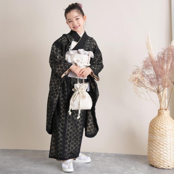 レンタル 七五三 7歳 女の子 utatane レトロ 七五三 7歳 レース 黒系 イエローベージュ ワントーン 七歳 七才