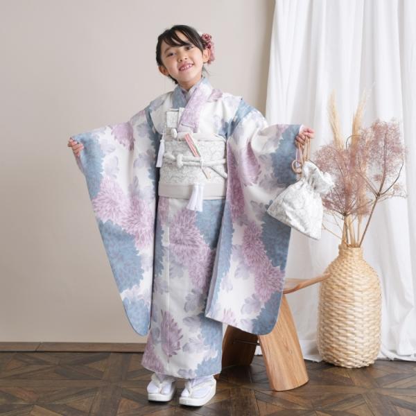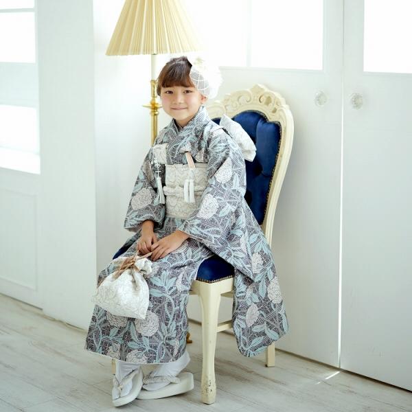 レンタル 七五三 7歳 セット ひよこ商店 古典柄 レトロ アンティーク系 七五三 7歳 花 グレー系 水色 七歳 七才
