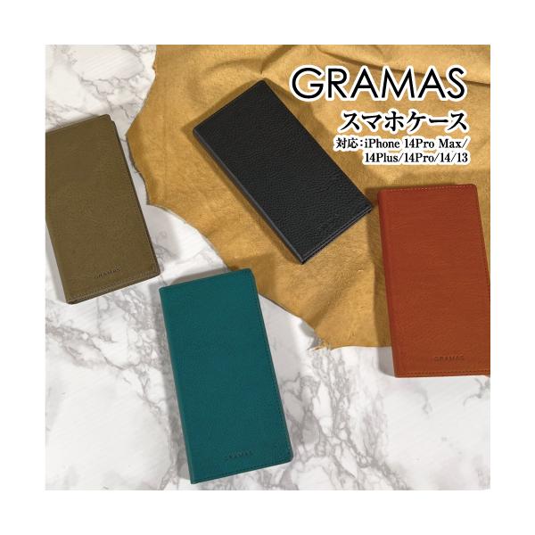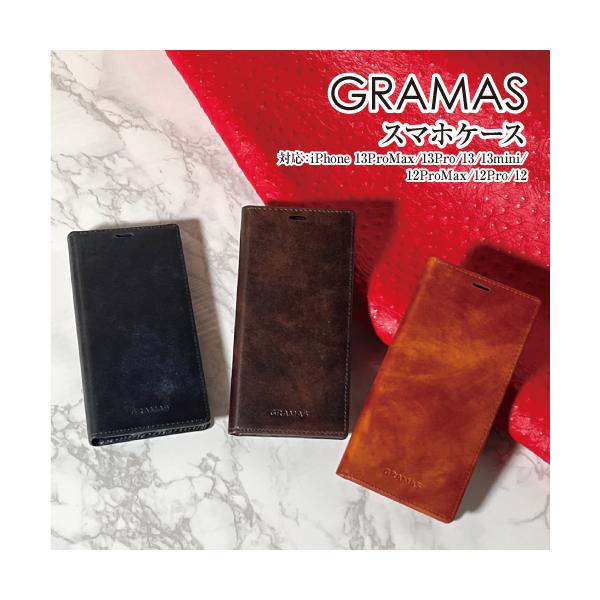送料無料 本革 GRAMAS/グラマス ミュージアムカーフレザー iPhone13ProMax/13Pro/13/13mini/12ProMax/12Pro/12 対応ブックケース フリップカバー エイジング