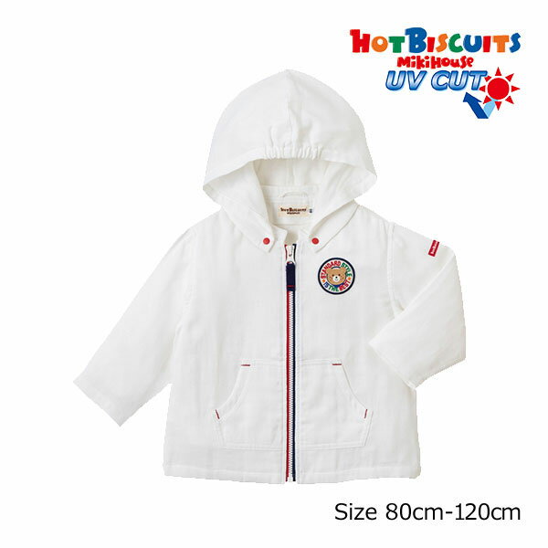 ●50%OFFセール●ミキハウス ホットビスケッツ mikihouse ガーゼ パーカー( 80cm 90cm 100cm 110cm 120cm )男の子 女の子 抗菌 消臭 紫外線カット 薄手羽織り 夏用 アウトレットMw50-gp