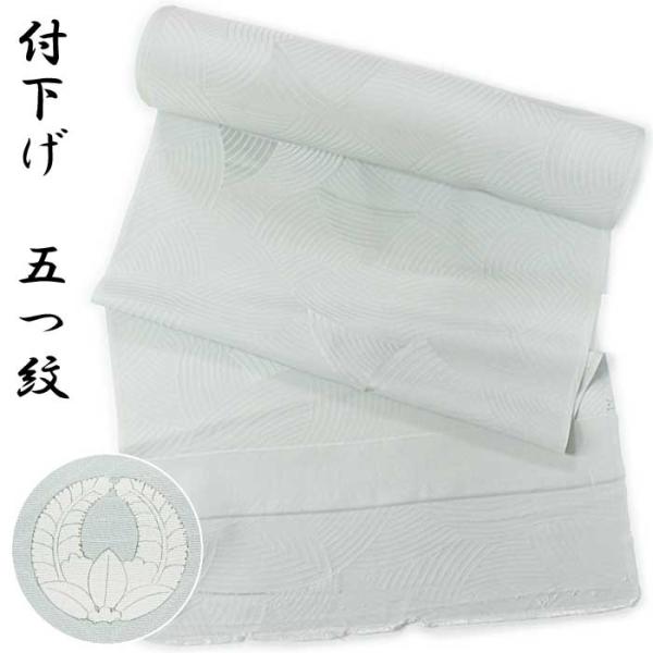 セール 着物 反物 附下げ 正絹 薄灰緑 波 舞踊 男踊り 五つ紋 上り藤 着尺 13.7m グレー 灰 男紋 未仕立て 付け下げ シルク 絹 生地 和装 和服 手芸 洋裁 5p