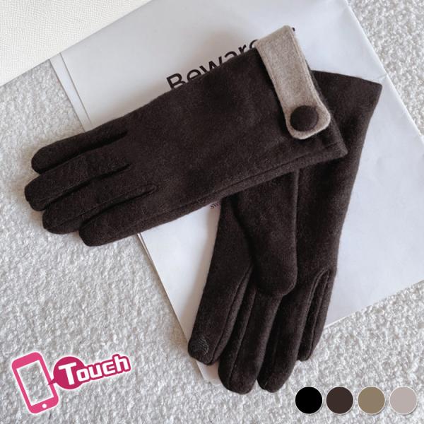 メール便送料無料 手袋 レディース 防寒 保温 裏起毛 スマホ対応 きれいめ グローブ 暖かい 人差し指 ハート 刺繍 バイカラー ベルト風 フェイクボタン 手首まで 防風 自転車 運転 洗え...