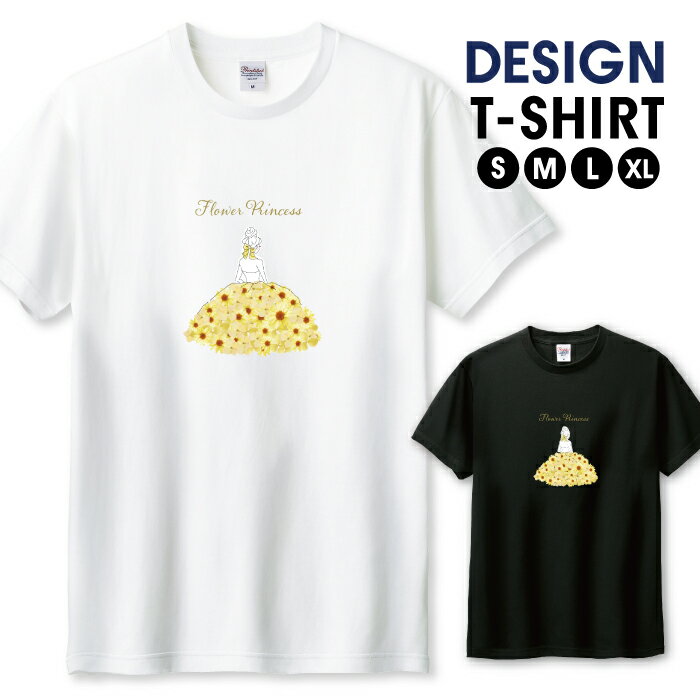 \半額・50%OFFクーポン/ Tシャツ メンズ ユニセックス 押し花(プリント) 花柄 フラワー プリンセス お姫様 ラプンツェル おしゃれ イエロー サイズ S M L LL XL 半袖 綿 100% コットン 人気 ゆったり 白Tシャツ 黒Tシャツ ホワイト ブラック 長持ち プリントtシャツ