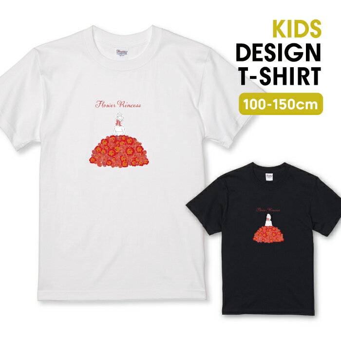 \半額・50%OFFクーポン/ Tシャツ キッズ こどもサイズ 押し花(プリント) 花柄 プリンセス お姫様 ラプンツェル かわいい レッド サイズ 100 110 120 130 140 150 半袖 綿 100% コットン 白Tシャツ 黒Tシャツ ホワイト ブラック こども服 子供サイズ 子供服 プリントt