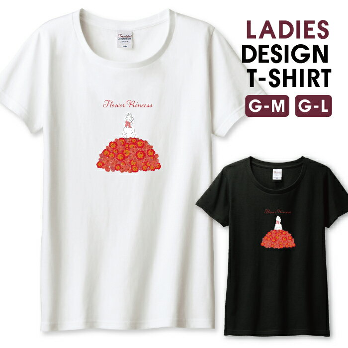 \半額・50%OFFクーポン/ Tシャツ レディース ガールズ 押し花(プリント) 花柄 フラワー プリンセス お姫様 ラプンツェル かわいい レッド サイズ M L 半袖 綿 100% コットン 人気 レディースサイズ 女性 白Tシャツ 黒Tシャツ ホワイト ブラック よれない 透けない 長