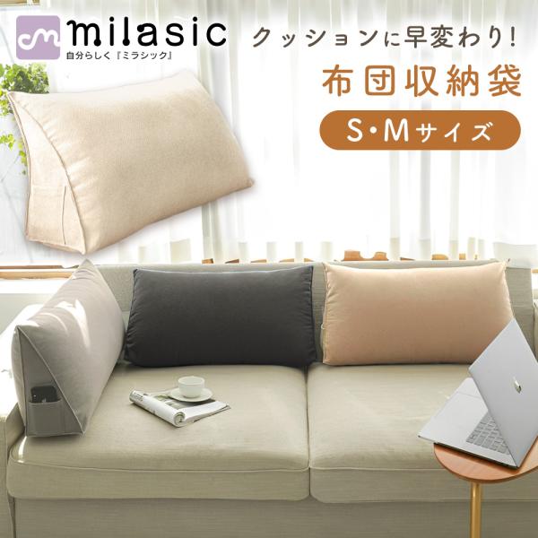 布団収納袋 クッション おしゃれ 背もたれ 洗える 羽毛布団 収納袋 ブランケット 毛布 MILASIC ポイント消化