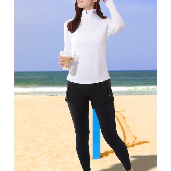 ラッシュガード 「2点セット」スタンドカラー フロント ハーフジップ 指ぬき ラッシュガード レディース